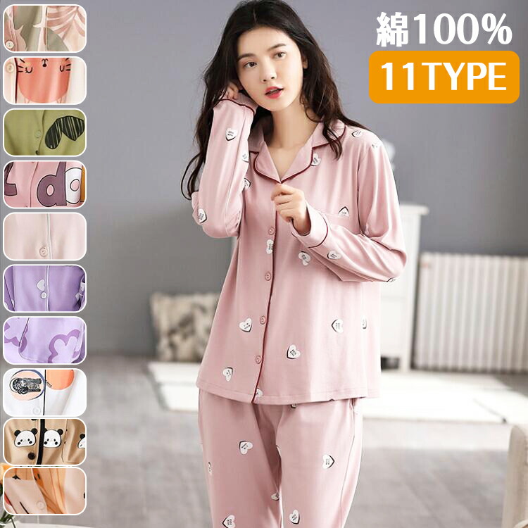 ルームウェア レディース 綿100% 11type 長袖 上下セット パジャマ 部屋着 寝間着 長ズボン ロングパンツ 春 夏 秋 冬 オールシーズン リラックス プレゼント シンプル カ 大人可愛い