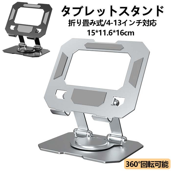 タブレットスタンド 水平回転式360° 折りたたみ式 スチール製 ホルダー 高さ 角度調整可能 滑り止め 軽量 姿勢改善 腰痛解消 4~13インチ対応