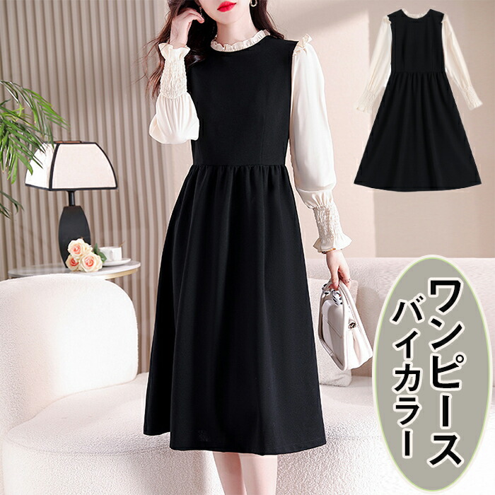 ワンピース レディース レトロ 女子ワンピ 長袖 春 秋 重ね着風 日系 中高生 クラシカル カワイイ 通勤 通学 ファッション 着痩せ 文芸