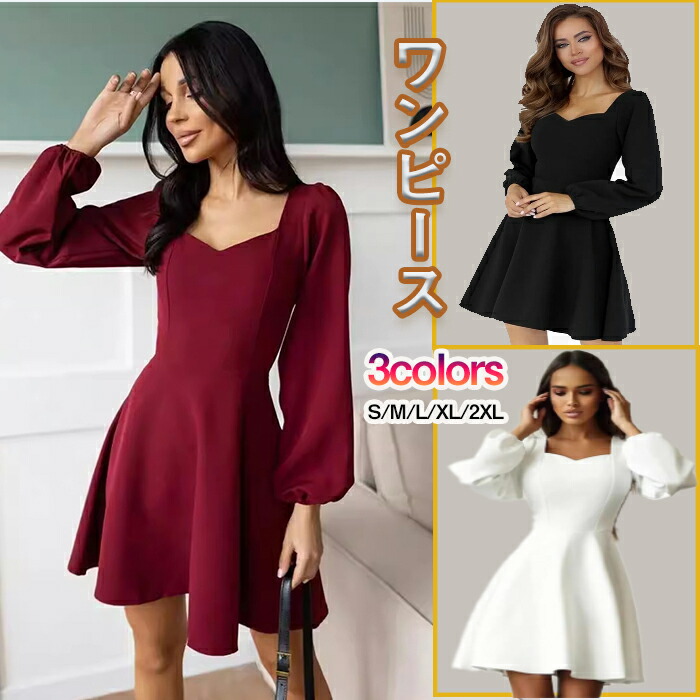 レディース 長袖ワンピース ドレス ロングスカート 春と秋 ラインスカート 気質 着痩せ ファッション