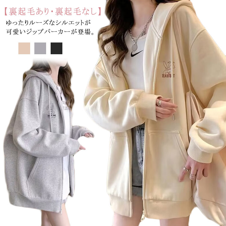 【裏起毛あり・裏起毛なし】ゆったりルーズなシルエットが可愛いジップパーカーが登場。