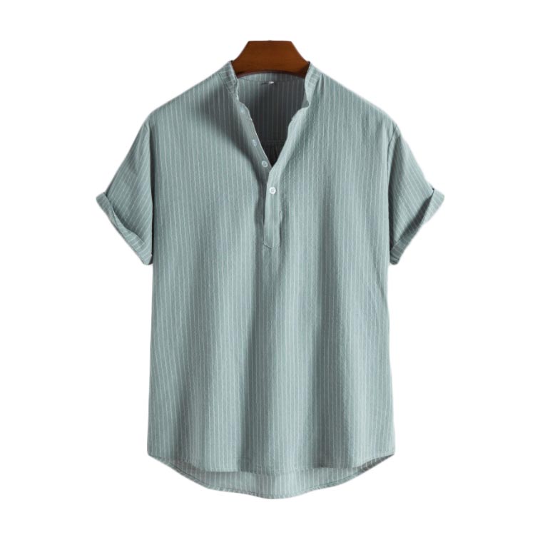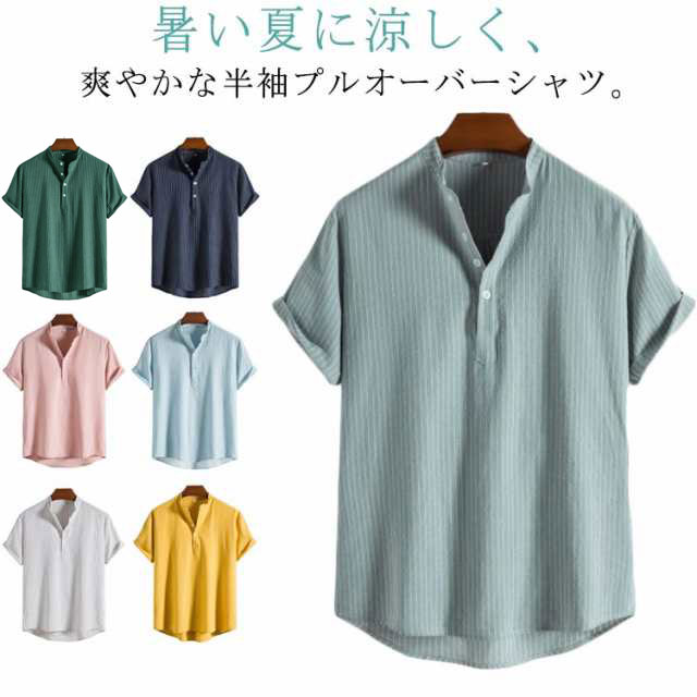 プルオーバー シャツ メンズ 半袖 シンプル おしゃれ スタンドカラー 大きいサイズ 半袖シャツ ストライプ 全7色 白 白シャツ パナマシャツ カジュアルシャツ トップス アメカジ カジュアル 夏服