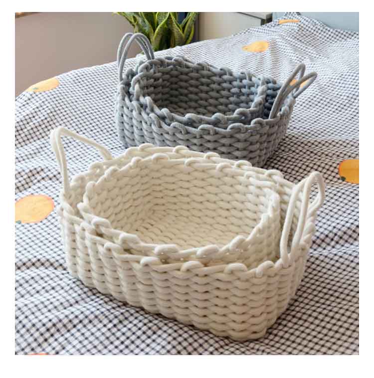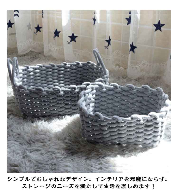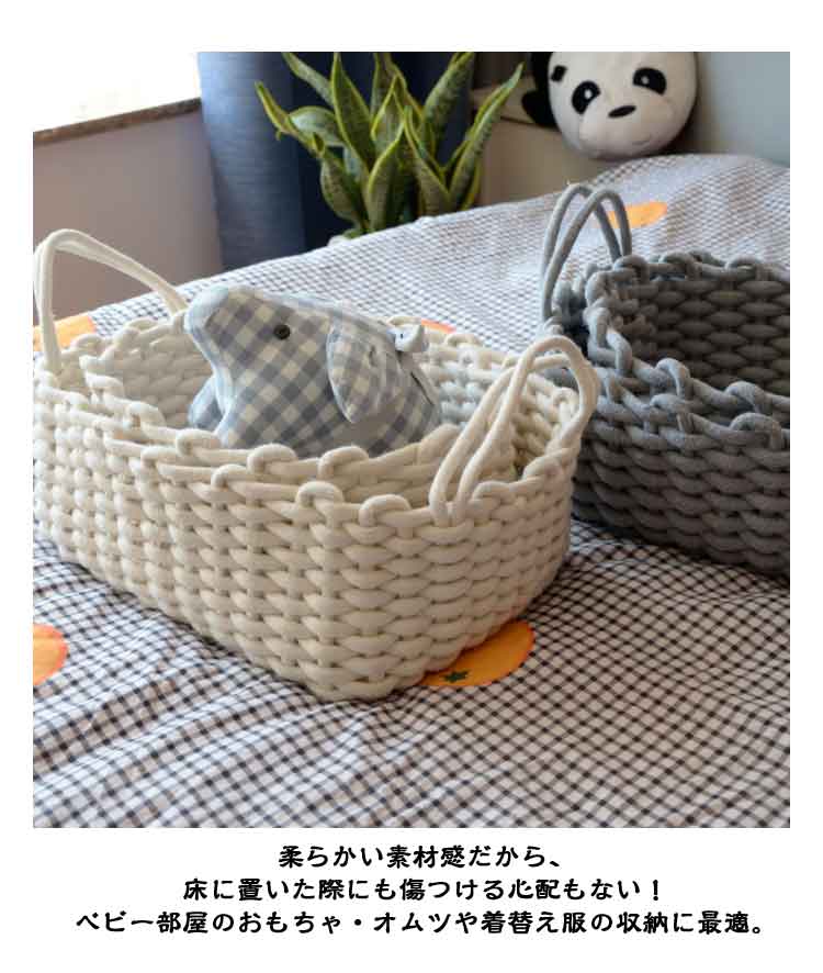 コットンロープ バスケット 柔らか 収納 持ち手付き シンプル 無地 おしゃれ インテリア コットンカゴ タオル収納 衣類収納 おもちゃ 子供部屋 大容量 レクタングル 着替え 入れ 置き ギフ 荷物