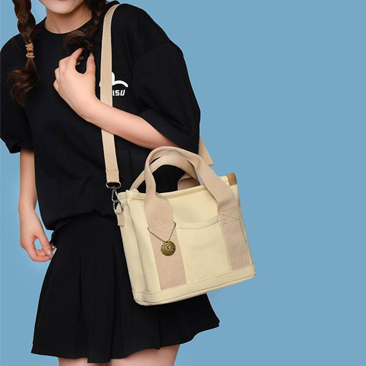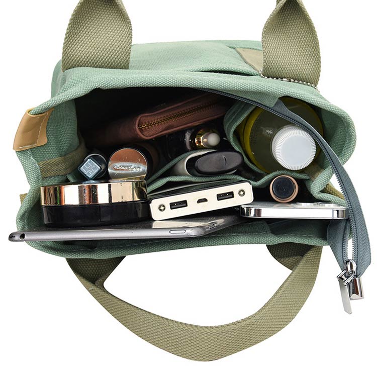 ファスナー付き お散歩 小さめ 帆布 2way キャンバス 仕切り ミニトートバッグ ポケット 肩掛け 旅行 バッグ レディースバッグ ショルダーバッグ 軽量 ショルダー ランチ トートバッグ