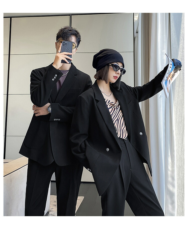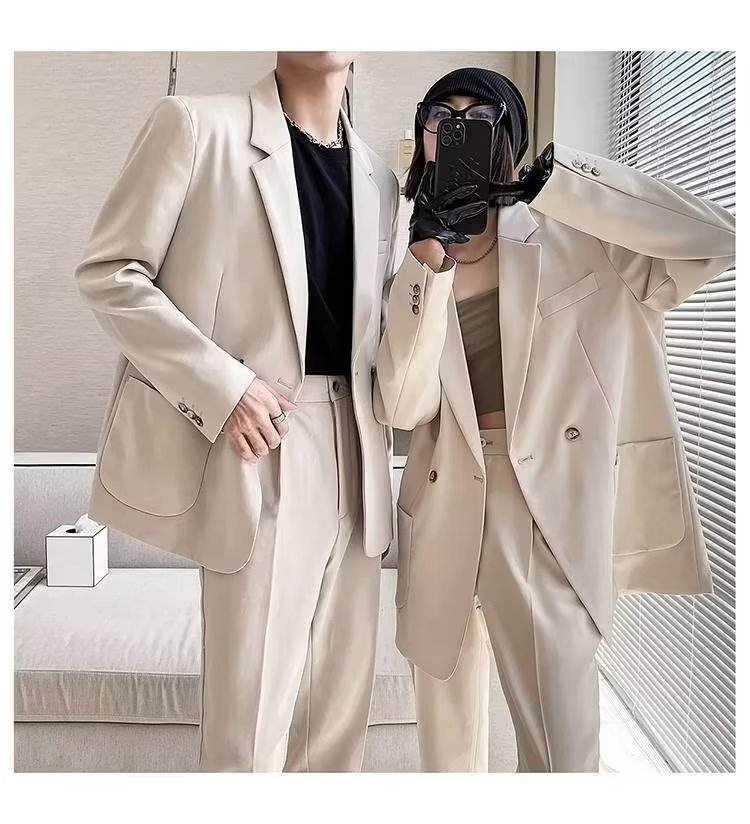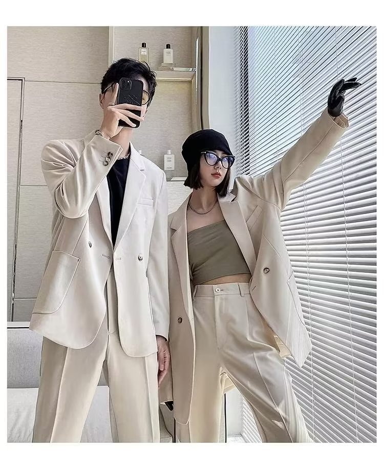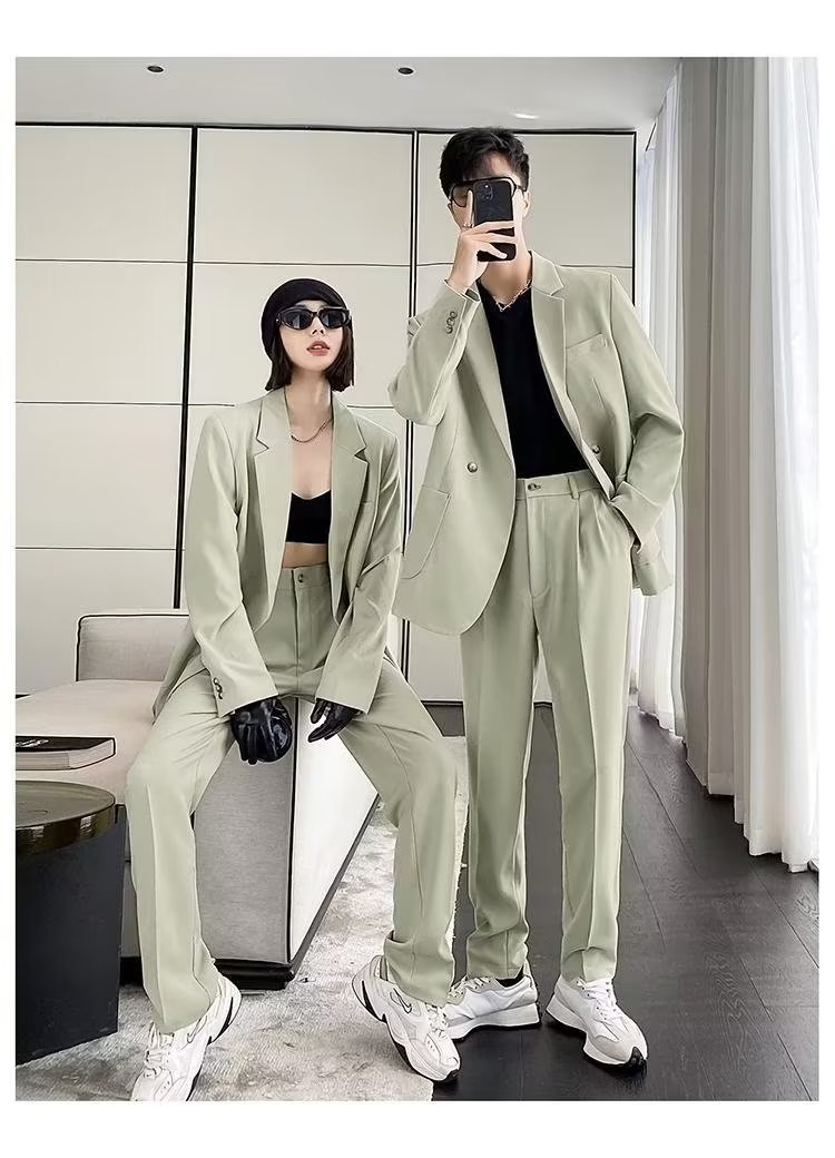 韓国風 お揃い ゆったり パンツスーツ カップル メンズスーツ レディーススーツ 一つボダン ジャケット+パンツ 2点セット おしゃれ 格好いい 無地 着痩せ セレモニースーツ フォー ビジネススーツ
