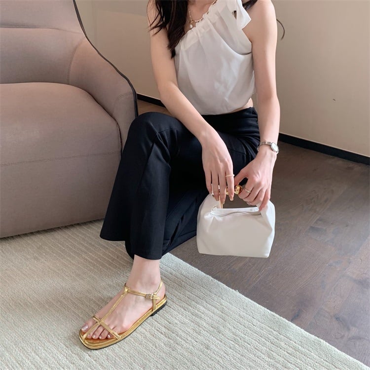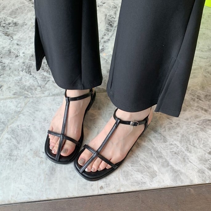 レディース サンダル コンフォート ぺたんこ 1cmヒール ストラップ フォーマル かっこいい カジュアル 大人 流行り 上品 きれいめ シンプル クラシック 個性的 涼し気 モード系 エレガント
