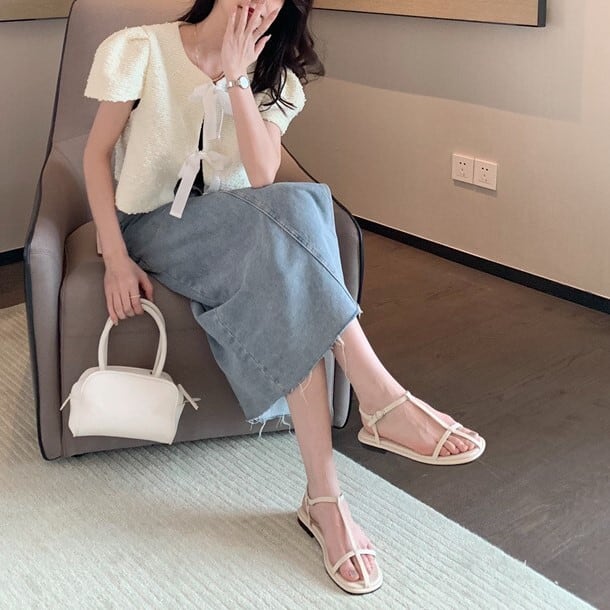 今季トレンドの華奢ストラップが特徴のローヒールサンダル。