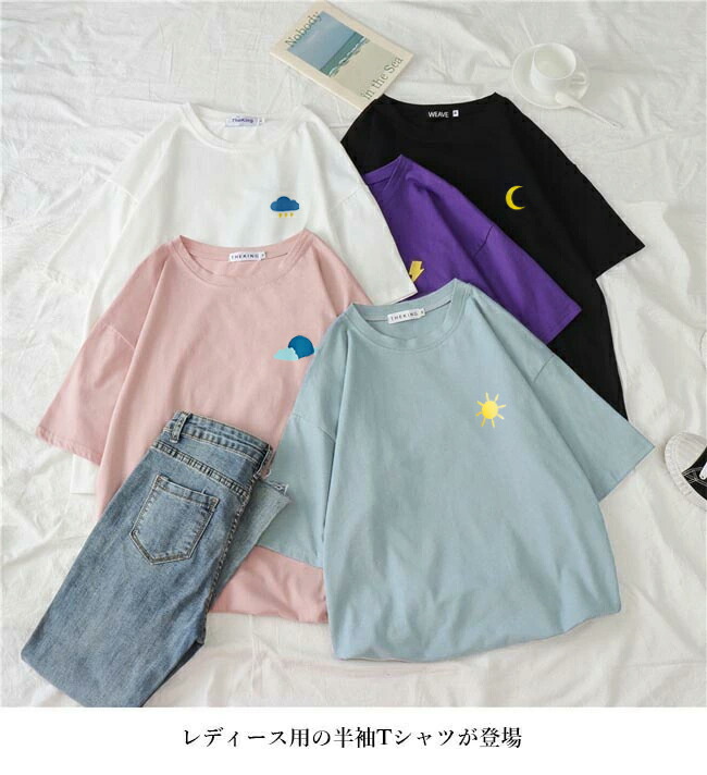 Tシャツ 半袖 レディース 夏Tシャツ ゆったり 半袖Tシャツ プリント仕様 カットソー サマーTシャツ 夏 カジュアル 可愛い トップス