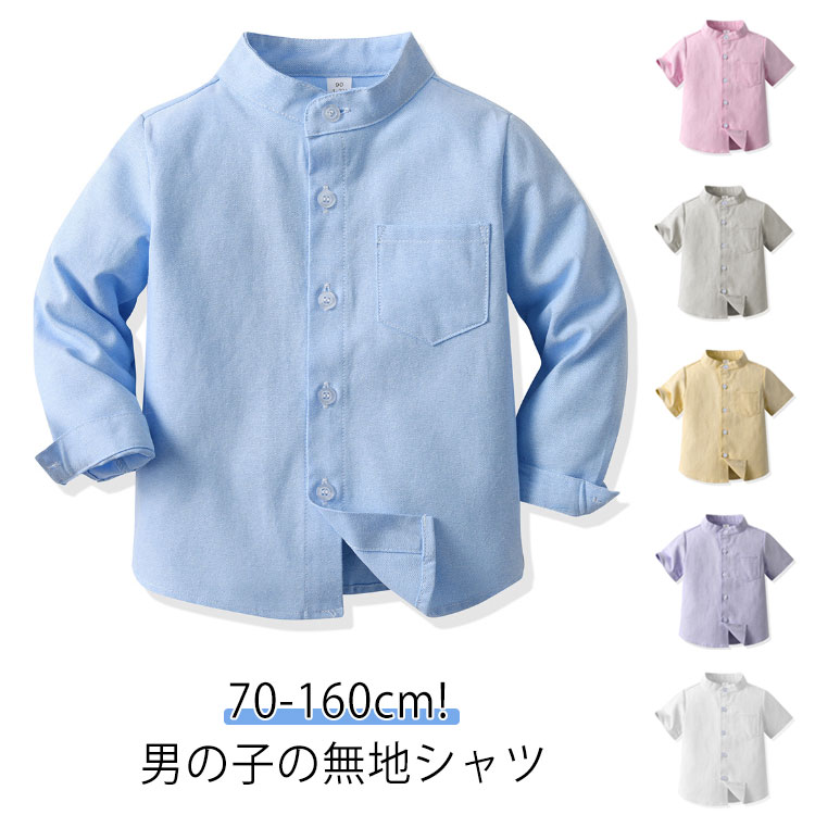 男の子 シャツ ベビーシャツ 立ち襟 キッズ トップス シャツ ブラウス 続々入荷中 ブルー(長袖) ホワイト(長袖) グレー(長袖) イエロー(長袖) パープル(長袖) グリーン(長袖) ピンク(長袖) ブルー(半袖) ホワイト(半袖) グレー(半袖) イエロー(半袖) パープル(半袖) グリーン(半袖) ピンク(半袖) 70cm 80cm 90cm 100cm 110cm 120cm 130cm 140cm 150cm 160cm