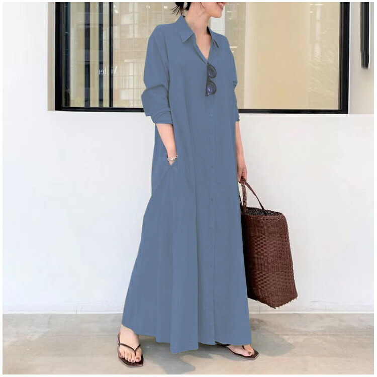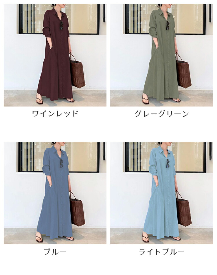 シャツ ワンピース 長袖 シャツワンピース ロング