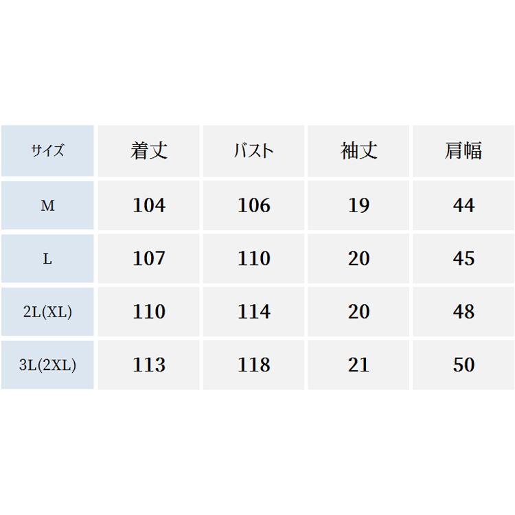 3L(2XL):着丈113cm/バスト118cm/袖丈21cm/肩幅50cm
