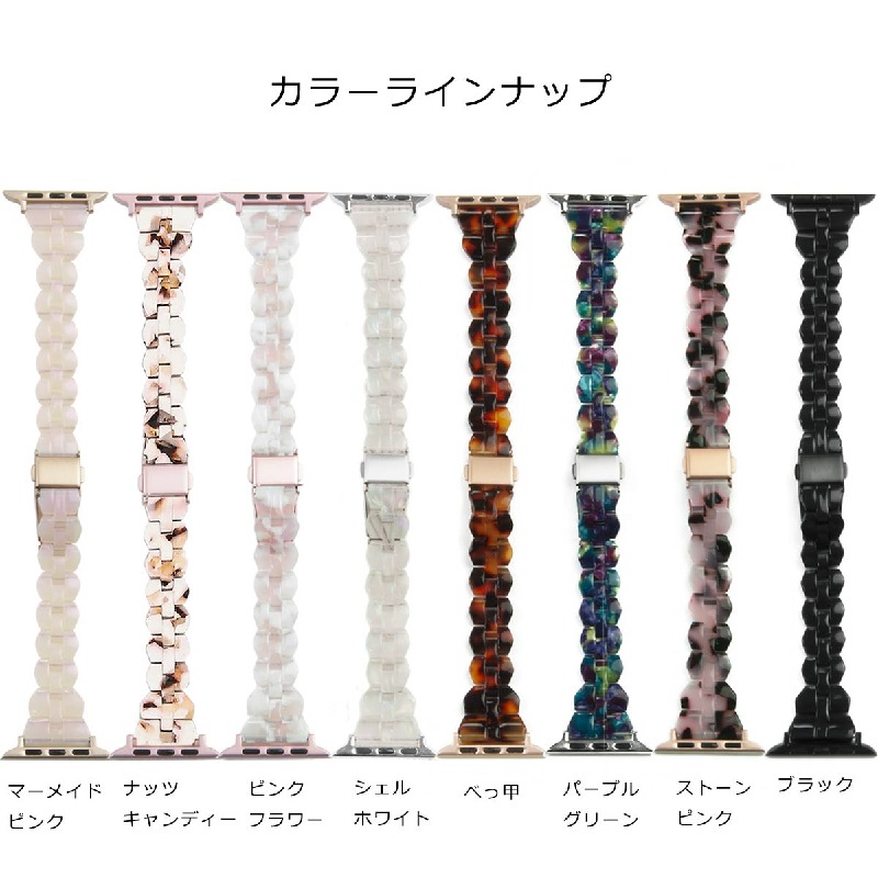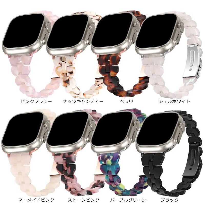AppleWatchバンド アップルウ 腕時計用アクセサリー 腕時計用ベルト バンド 続々入荷中 38/40/41mm 42/44/45/49mm マーメイドピンク ナッツキャンディー ピンクフラワー シェルホワイト べっ甲 パープルグリーン ストーンピンク ブラック