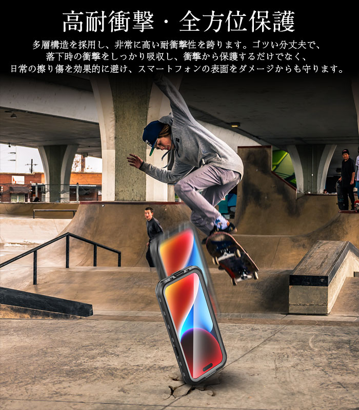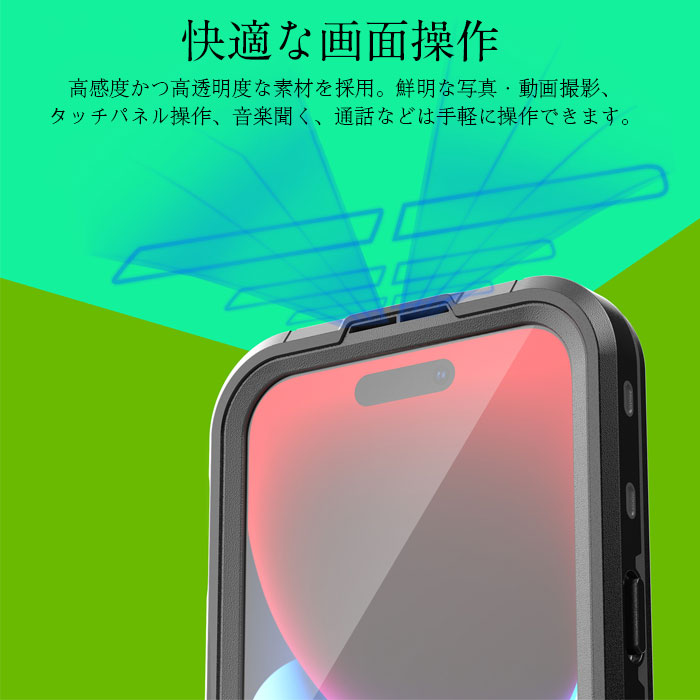 【防水・防塵性能】超防御の防水性能を持つ、水、雪、汚れなどからスマホをしっかりと保護します。海辺、プール、スキー、登山などのアウトドア活動はもちろん、お風呂や雨の日などの様々な場面でも大活躍です。