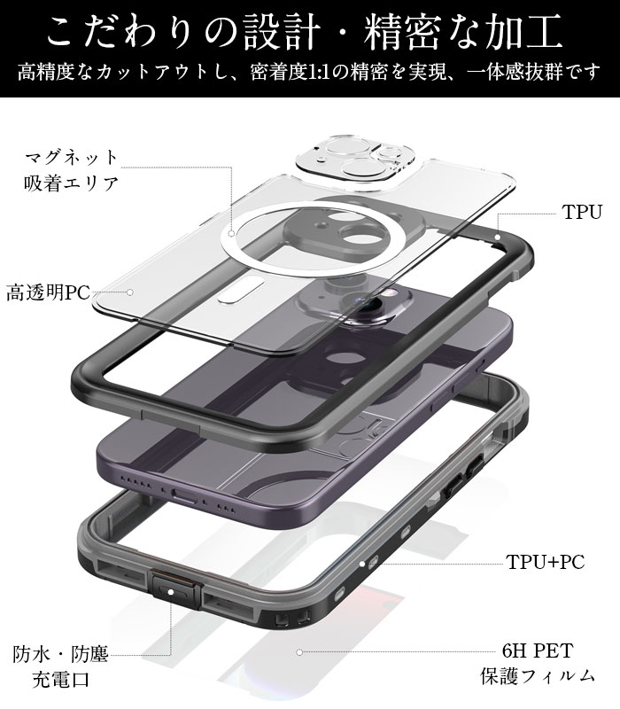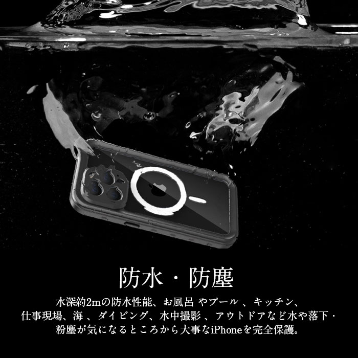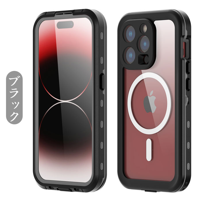 iPhone 15 対応 防水ケース 360度全面保護 防水防雪 防塵 耐衝撃 完全密閉型 水中カバー 両面ケース ワイヤレス充電対応 脱着簡単 Pro タッチ感度良い