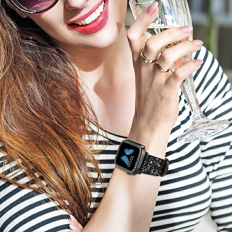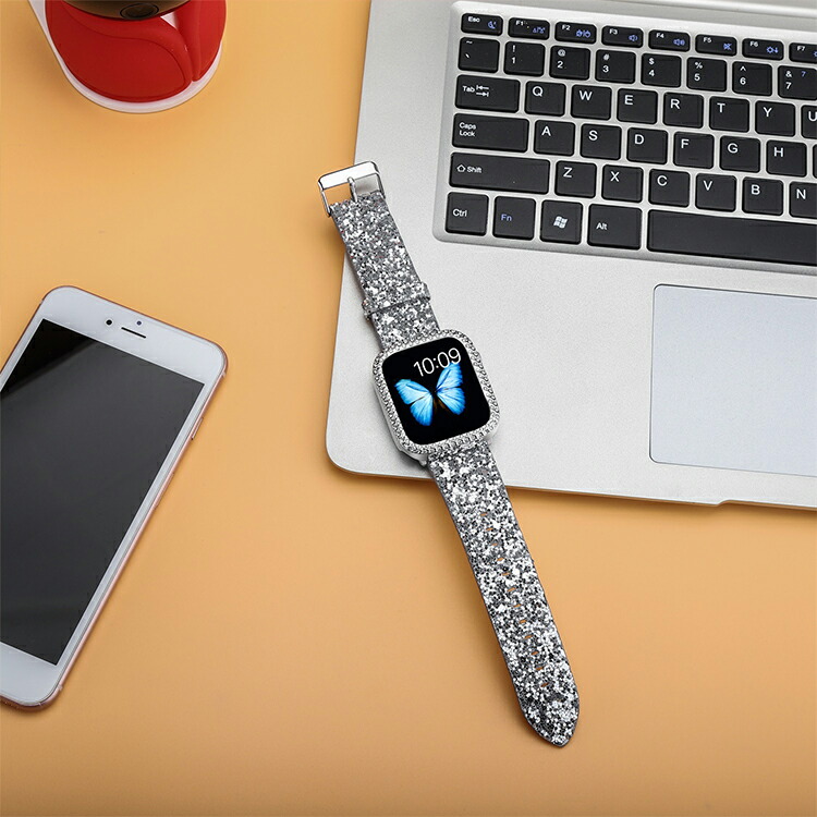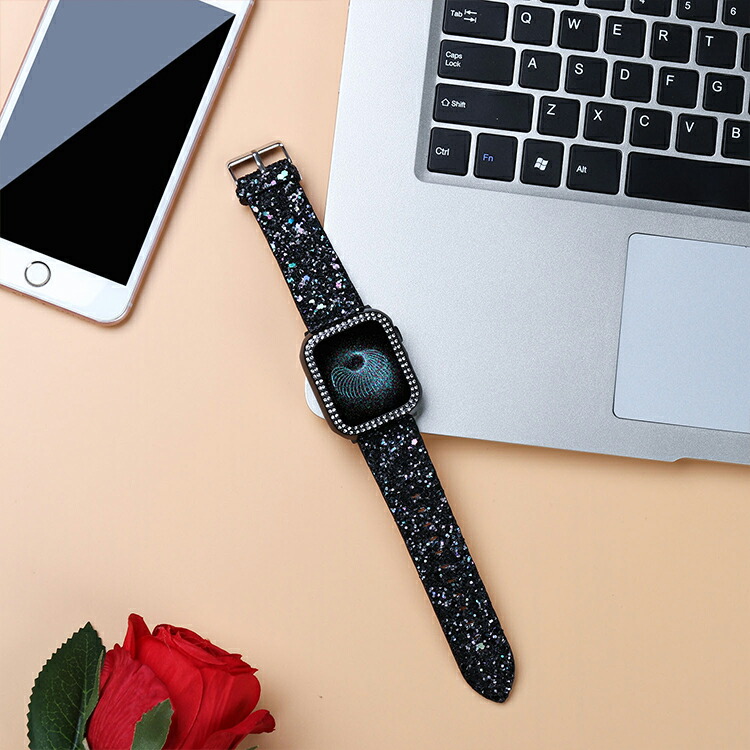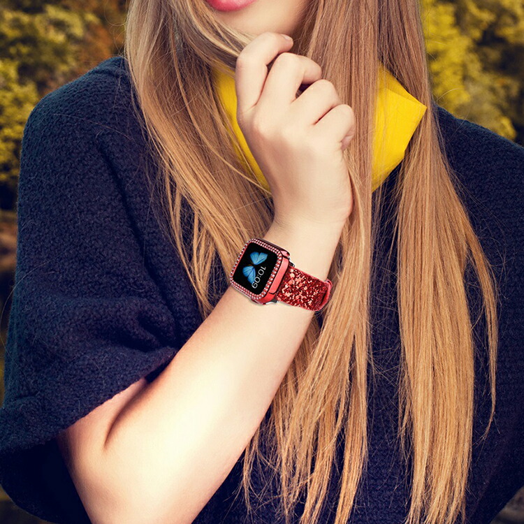 Apple watch バンド キラキ 腕時計 続々入荷中 シルバー レッド ローズゴールド ブラック 38mm 40mm 42mm 44mm 41mm 45mm