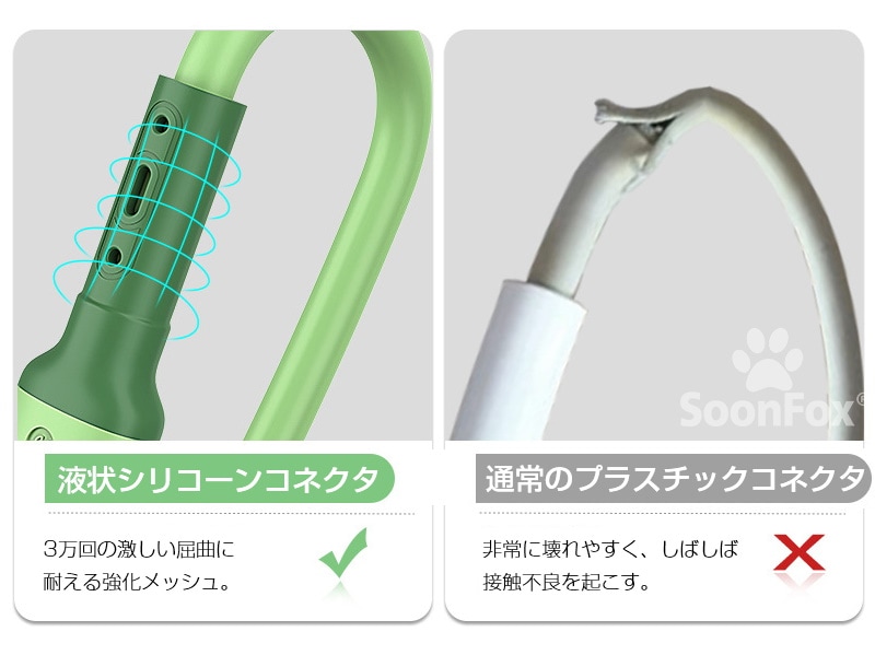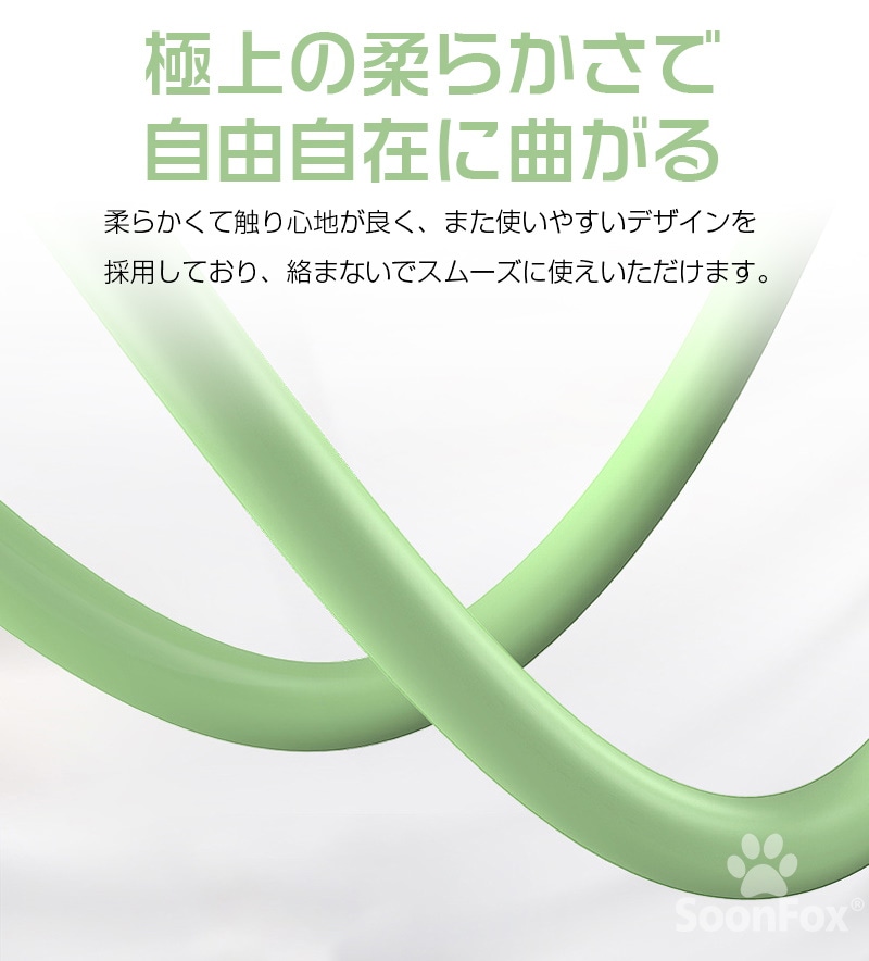 上質なシリコン素材を使用しており、従来のケーブルより柔らかく、扱いやすいです。手触りもGood。 ケーブルが柔らかいので絡まらず、快適に使用できます。ケーブルにかかる負担を軽減し、使用寿命をより長くします。