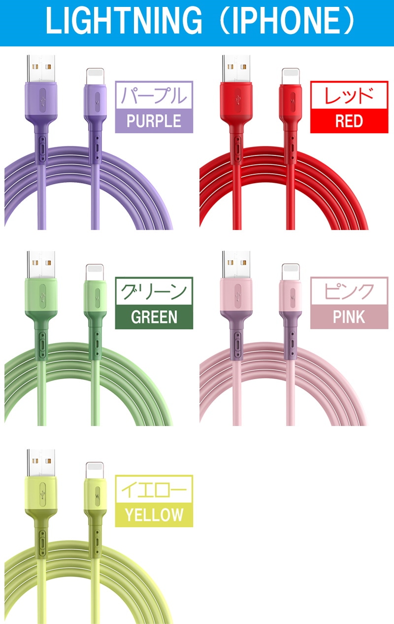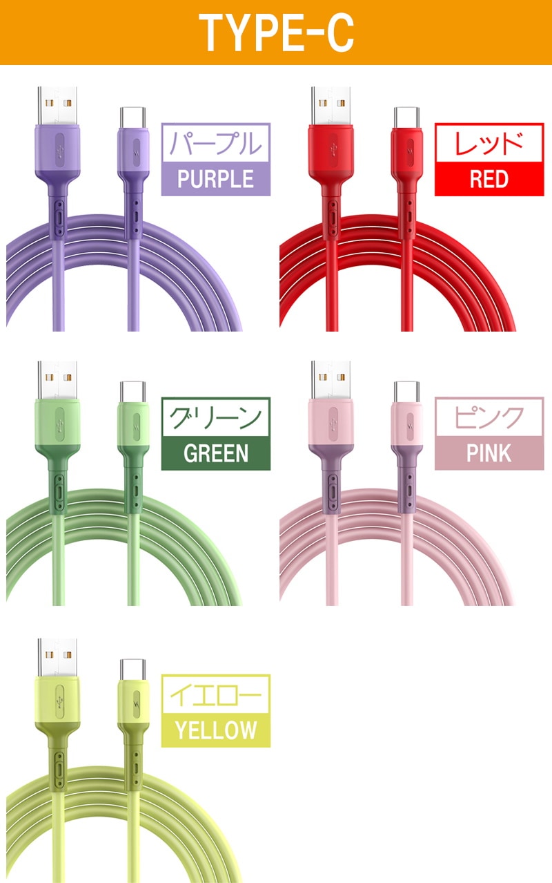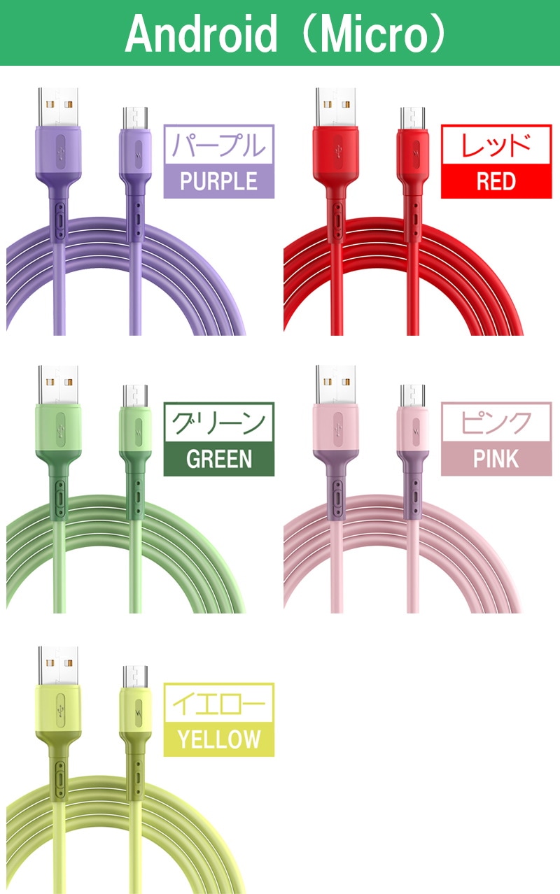 充電ケーブル iPhone用 Andr スマートフォン タブレット 通販 レッド ピンク パープル グリーン イェロー Lightning(iphone) Android(Micro) Type-C