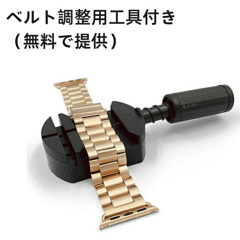 Apple Watchの着せ替えバンドから高品質でラグジュアリーなステンレス製の5連ベルトが登場です。 無垢コマを使用しており,重量感のある仕上がりです。きちっとした印象で、 スーツにも私服にも合わせやすいのが特徴です。 またステンレス製なので重量感があり、キズが付きやすいのが注意点ですが レザーとは違いキズは研磨クロスなどで磨いてメンテできます。 汗や水が付着してもクロスで拭き手入れを欠かさなければ、レザーのように痛んでくることはありません。 またアップルウォッチ用のラグも付いていて、ベルト調整用の工具もセットになっています。 商品が届いてスグにベルト調整が出来るので時計店に持ち込んでベルト調整をする必要もありません。