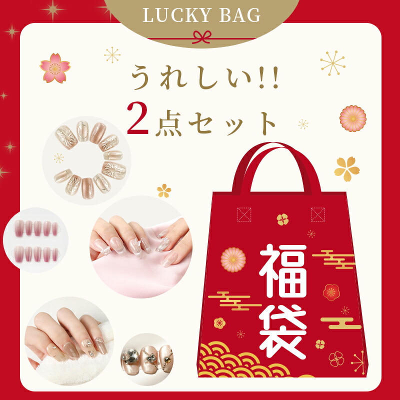 福袋 2025 色お任せ ネイルチップ XS(2点セット) S(2点セット) M(2点セット)