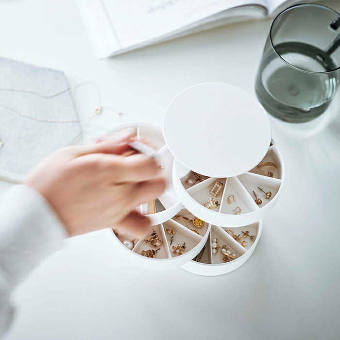 ネイルパーツや、ハンドメイドのパーツ、小さなアクセサリーなどを綺麗に整頓して収納できる回転式のケースです。