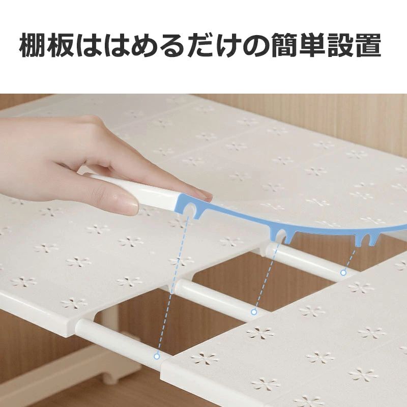 お好きな幅に調整できるため、設置個所にピッタリのサイズにできて整理も快適に。