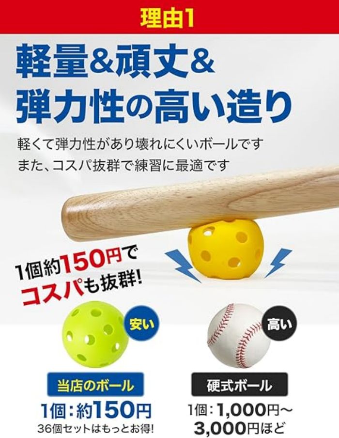 【弾力性が高いから壊れにくい】弾力性の高いEVA素材を採用したことで、軽くて丈夫な壊れにくいボールができました。場所を選ばず使える練習ボールは12個セットから36個セットまであり、用途に合わせて選ぶことが出来ます。