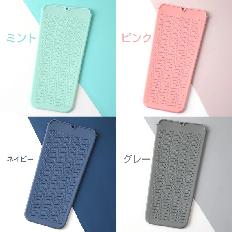 パステル4色 シリコン製 ヘアアイロン ピンク グレー ミント ネイビー