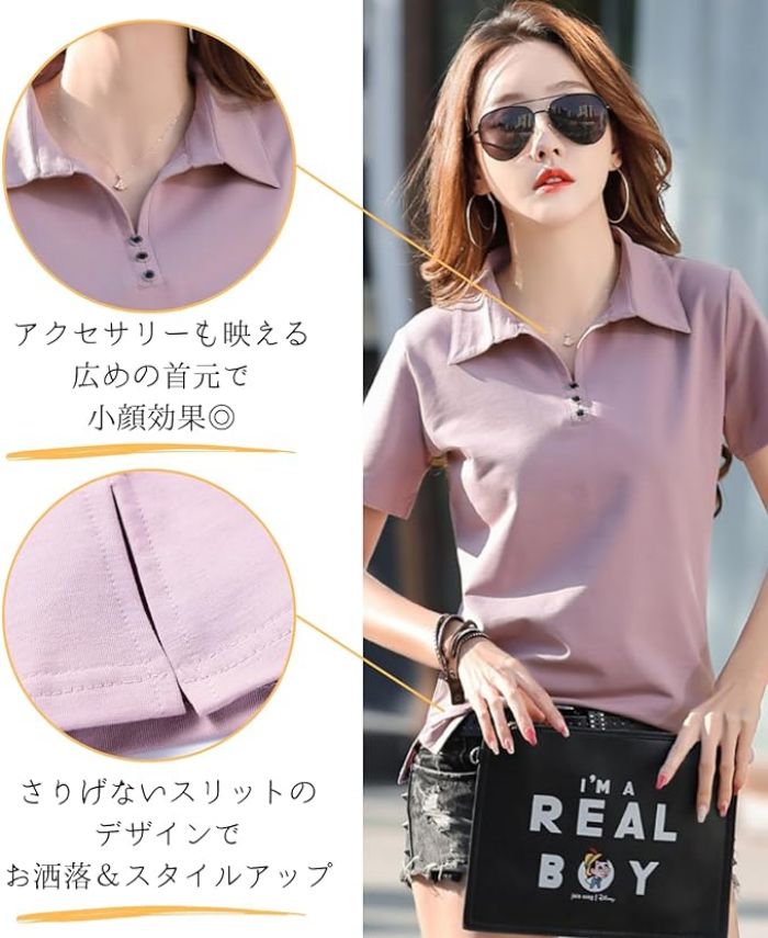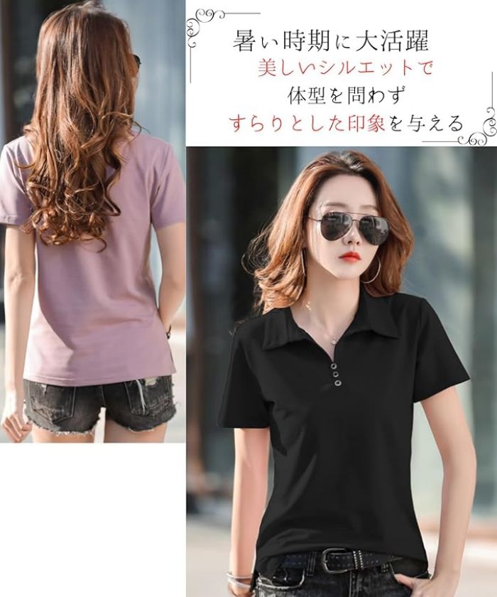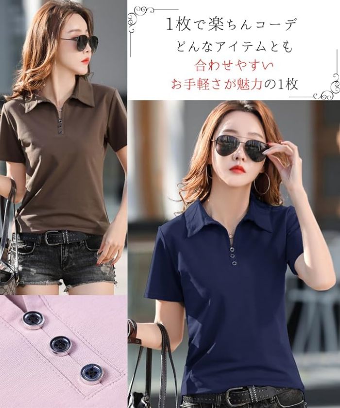 ポロシャツ レディース 半袖 服 夏服 トップス 春 夏 tシャツ レディースシャツ レディース半袖 無地 シンプル 大人 おしゃれ 襟付き 上品 きれいめ オフィス アウトドア 通勤 涼しい