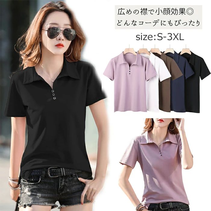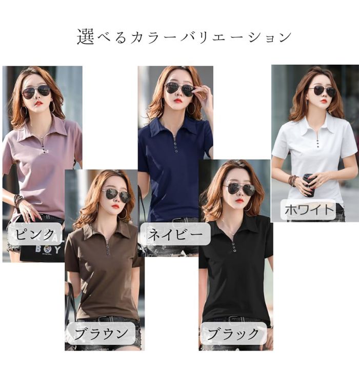 ポロシャツ レディース 半袖 服 夏服 レディースファッション 特集 ブラック ピンク ホワイト ネイビー ブラウン S M L XL 2XL 3XL