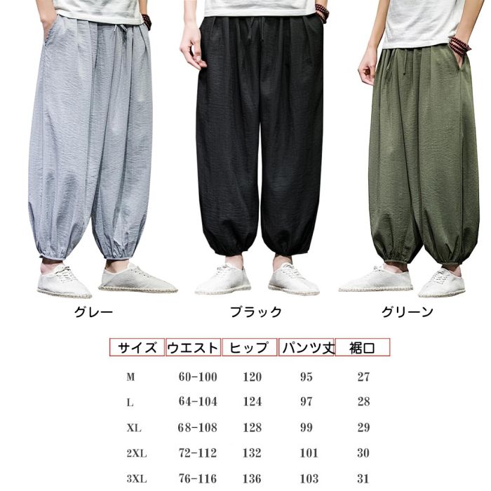 メンズ ズボン 夏用 ガウチョパンツ メンズファッション 39%Off ブラック グレー グリーン M L XL 2XL 3XL