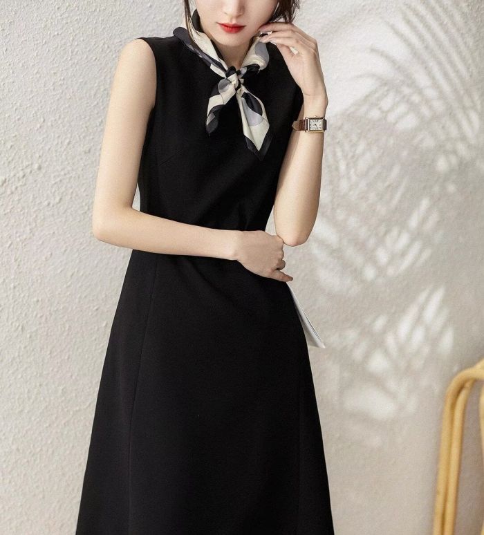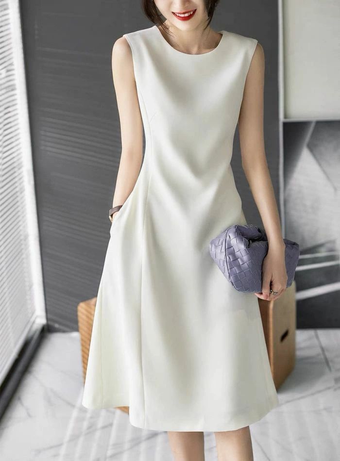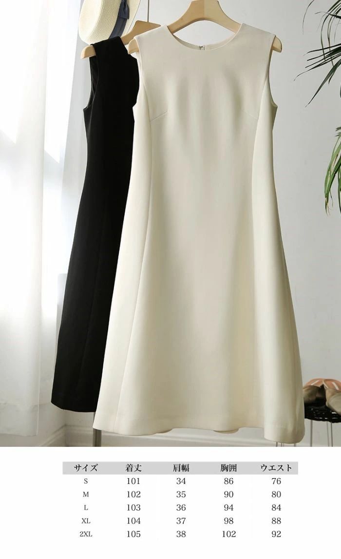 ワンピース ノースリーブ レディース シンプル ドレス 膝丈 Aライン 上品 着痩せ パーティー 無地 発表会 結婚式 ブラック 黒 ホワイト 白 20代 30代 40代 50代 S M L 60代