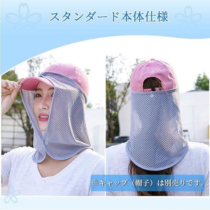 帽子用フェイスカバー UVカット ネックガード 紫外線対策 メッシュ 涼しい ネックカバー キャップのフラップ通気 吸汗速乾 男女兼用 首筋を熱から守る