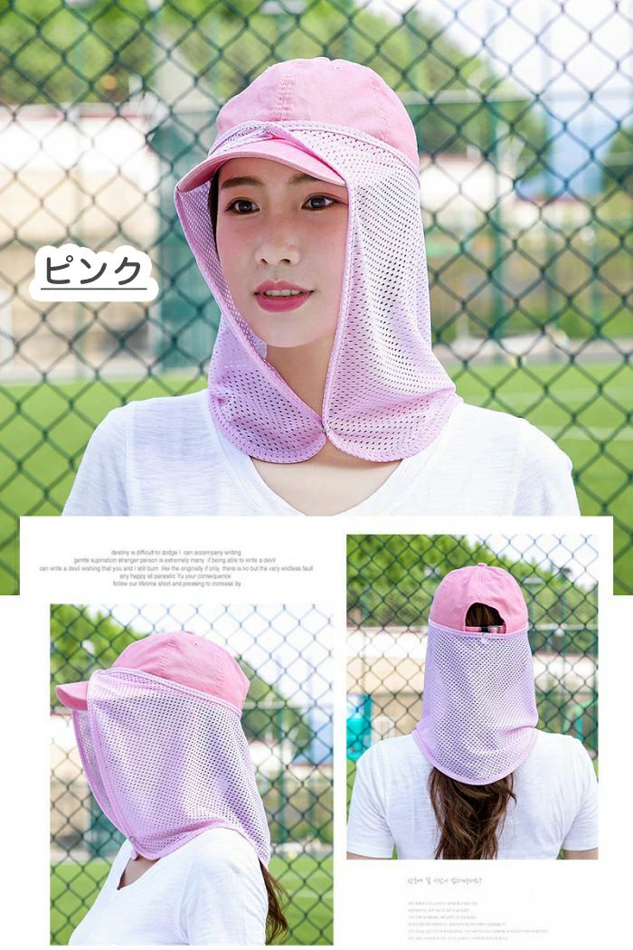帽子用フェイスカバー UVカット ネッ グレー ピンク ブルー ホワイト