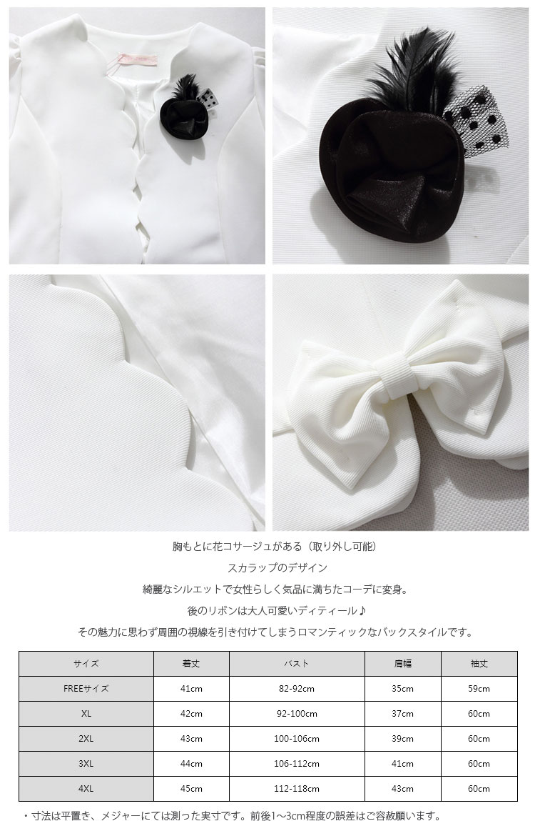 ボレロ 結婚式 長袖 フォーマルボレロ リボン長袖 花コサージュ ショートジャケット トップス カーディガン ワンピース フォーマル お呼ばれ パーティー ショ 二次会