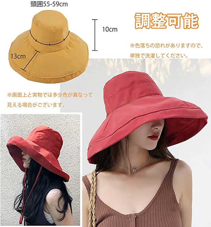 UVカット帽子 レディース ハット【UPF50+ あご紐付き 風で飛ばない】春夏 帽子 紫外線対策 紫外線カット 大きいサイズ 折りたたみ 日焼け防止 アウトドア 自転車 携帯便利 スカラハット