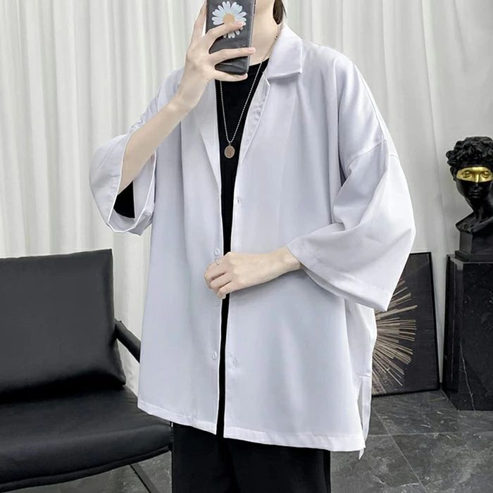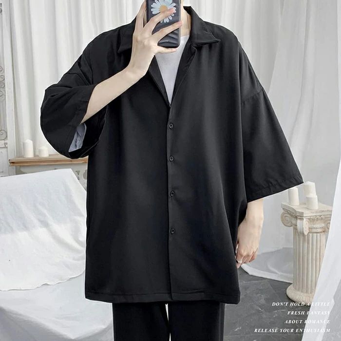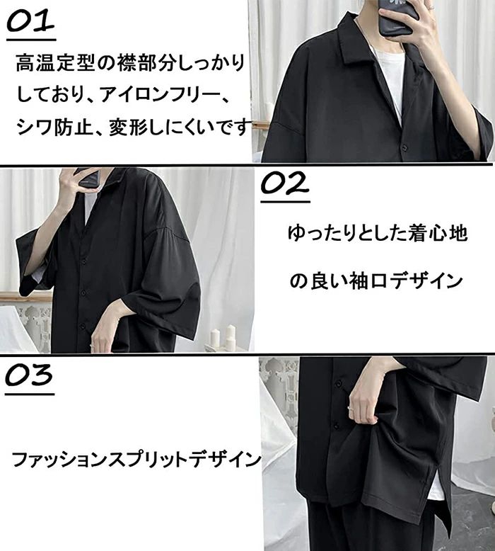 メンズ 五分袖 吸汗速乾 快適な軽い オーバーサイズシャツ ワイシャツ 韓国 ポロネック 大きいサイズ 春 夏 派手 ドロップショルダー 無地 半袖 ストリート系