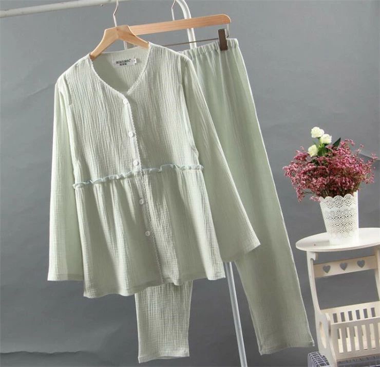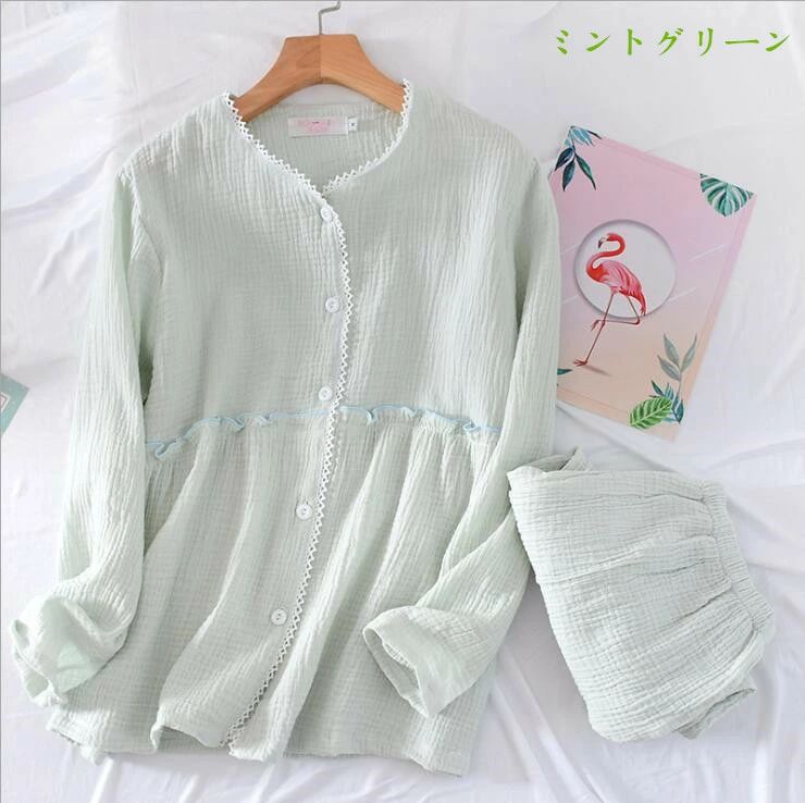 パジャマ ルームウェア レディース ダブルガーゼ 綿100% ウエストサイズ調節可能 マタニティ部屋着 ナイトウェア 上下セット パンツ チュニック ロングパンツ 長袖 春夏 通気性 吸水性 ロング