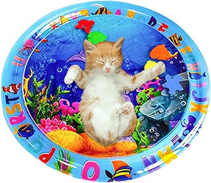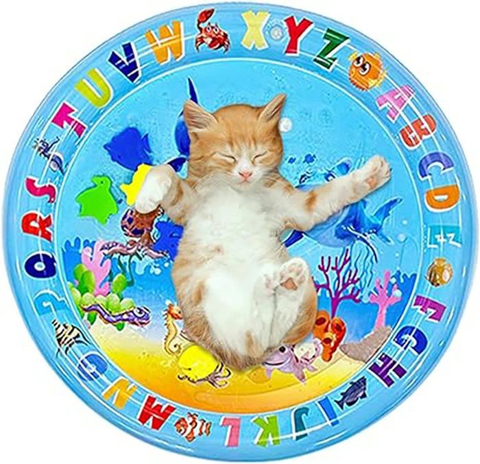 感覚ウォーターマット ペット ひんやりマット 猫のプレイマット ポータブル猫ベッド 水プレイマット 猫用厚みのある感覚水プレイマット ペットプレイ水センサーパッド、水プレイマット 感覚プレイマット猫