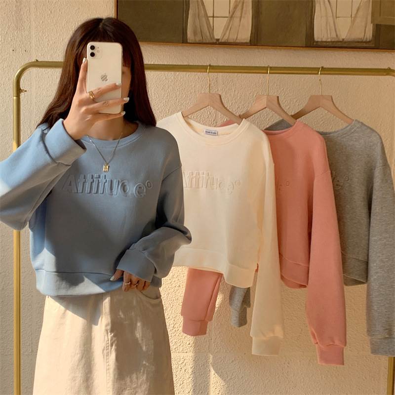 トップス レディース スウェット トレーナー ショート丈 クロップド丈 長袖 ドロップショルダー エンボスロゴ 大人可愛い きれいめ カジュアル シンプル おしゃれ お洒落 かっこいい こなれ感 ラフ メンズライク 存在感 抜け感 ワンサイズ フリーサイズ 白 ホワイト グレー 灰色 ピンク 水色 ブルー 無地 春 秋 ママ 学生 通学 公園デビュー アウトドア 旅行 お出かけ 女子会 普段使い デイリー 体型カバー 10代 20代 30代 40代 50代 60代 定番 オルチャン 韓国 モテ