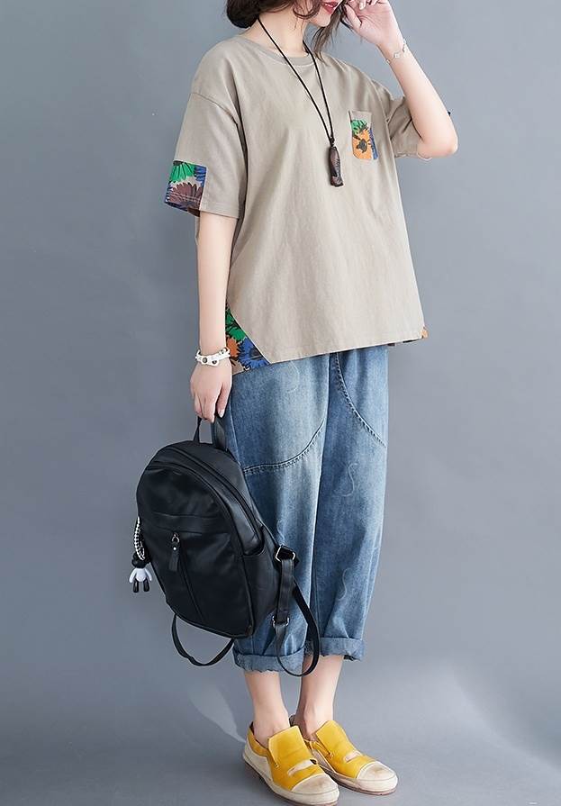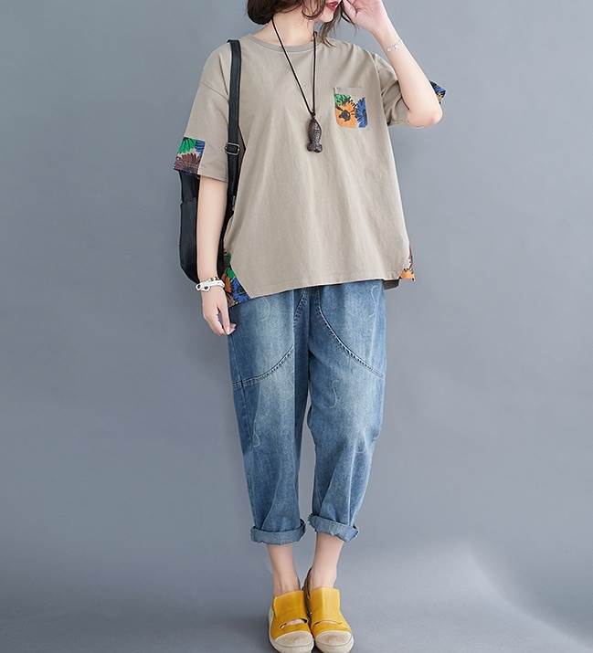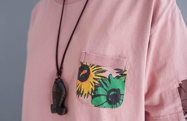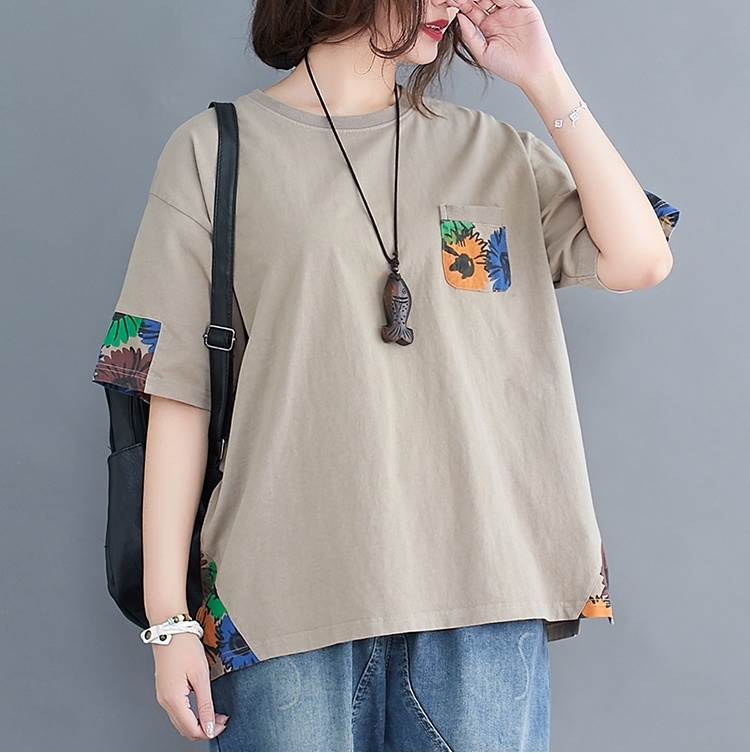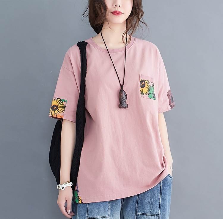 大きいサイズ Tシャツ 花柄 ひまわり レディース 大きめ ゆったり ラフ アジアン スリット 個性的 個性派 レトロ 夏 お洒落 オシャレ ポイント ロング 涼しい 涼しげ カジュアル 向日葵 ヒマワリ 体型カバー ラウンドネック くすみカラー 30代 40代 50代 半袖 5分袖 かわいい 大人可愛い