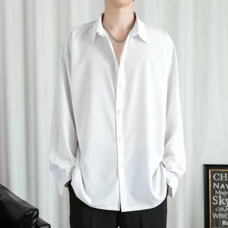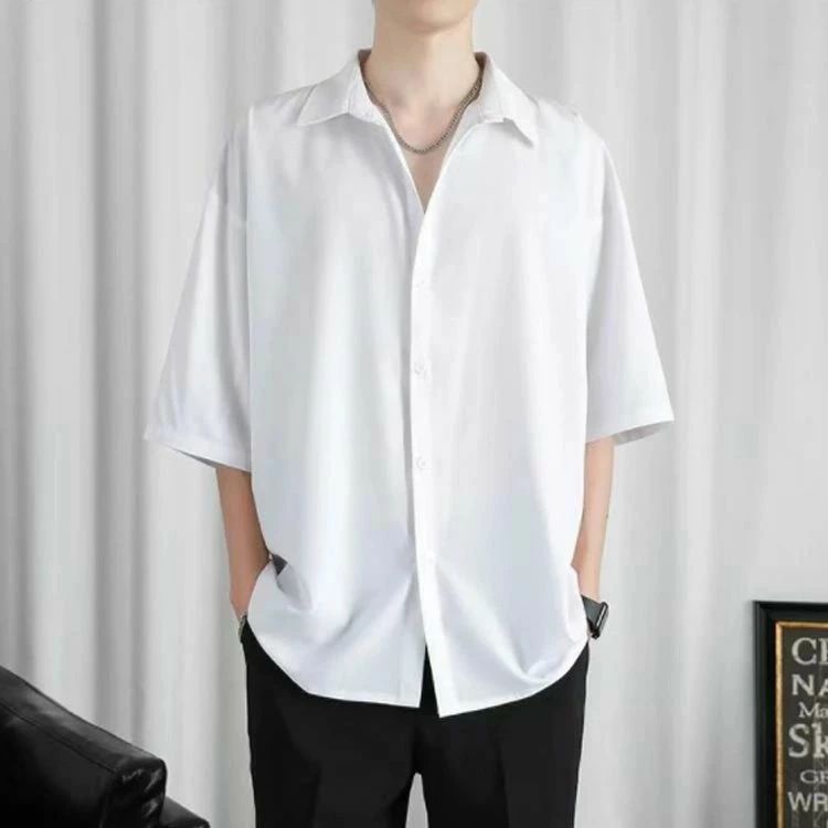 シャツ 接触冷感 涼しい メンズ 長袖 カジュアル 半袖 ビジネス 夏 アイスシルク 前開き 無地 白 グレー ホワイト ブラック 黒