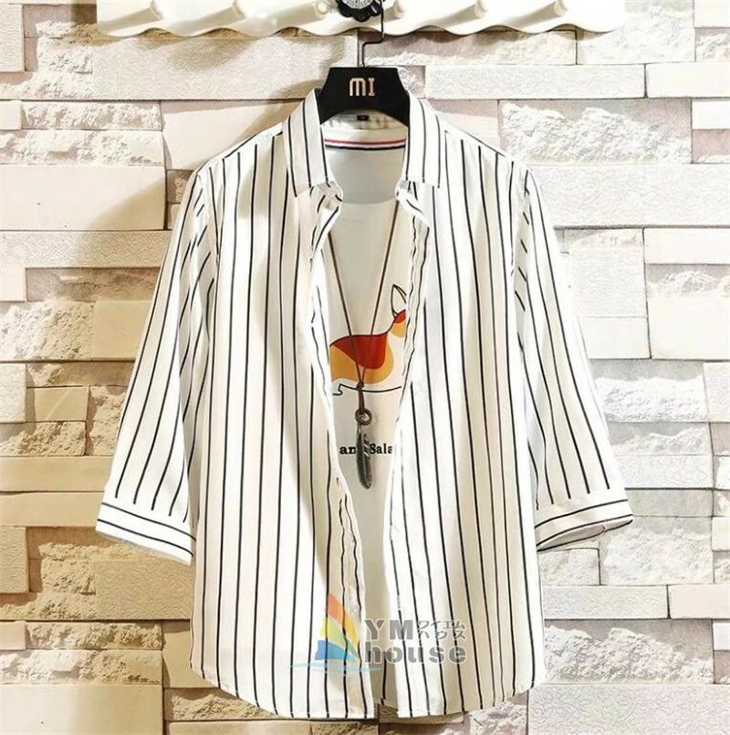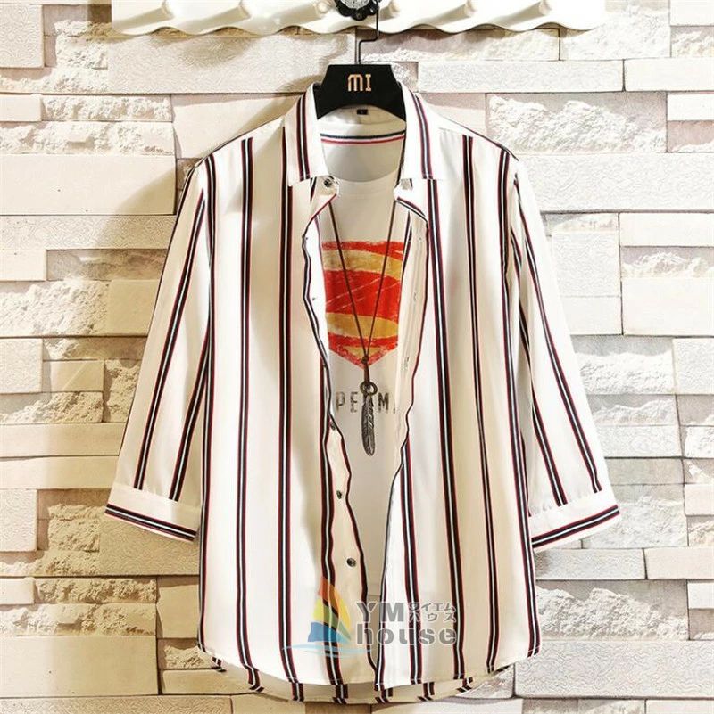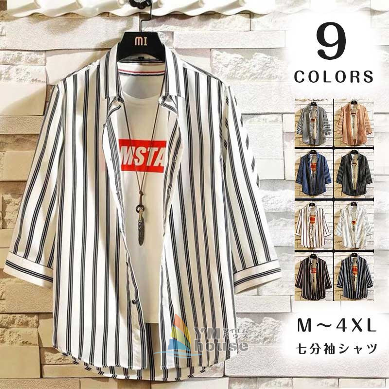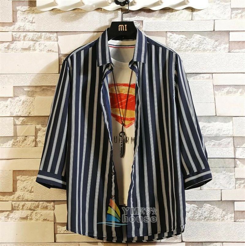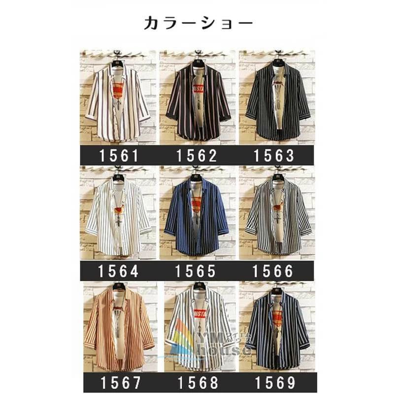 ストライプシャツ メンズ 七分袖シャツ メンズファッション お買い得 1561 1562 1563 1564 1565 1566 1567 1568 1569 M L XL 2XL 3XL 4XL