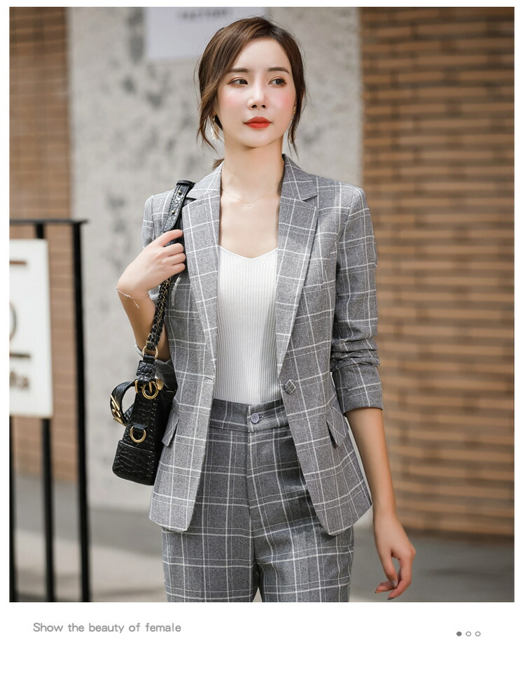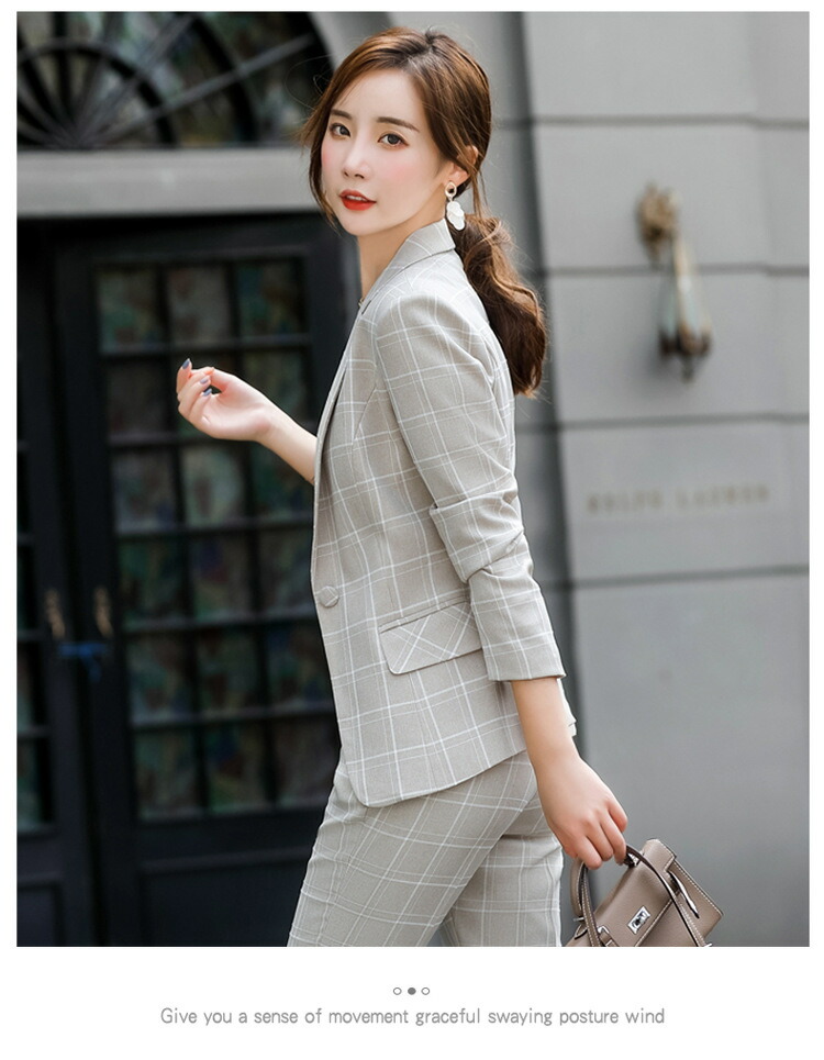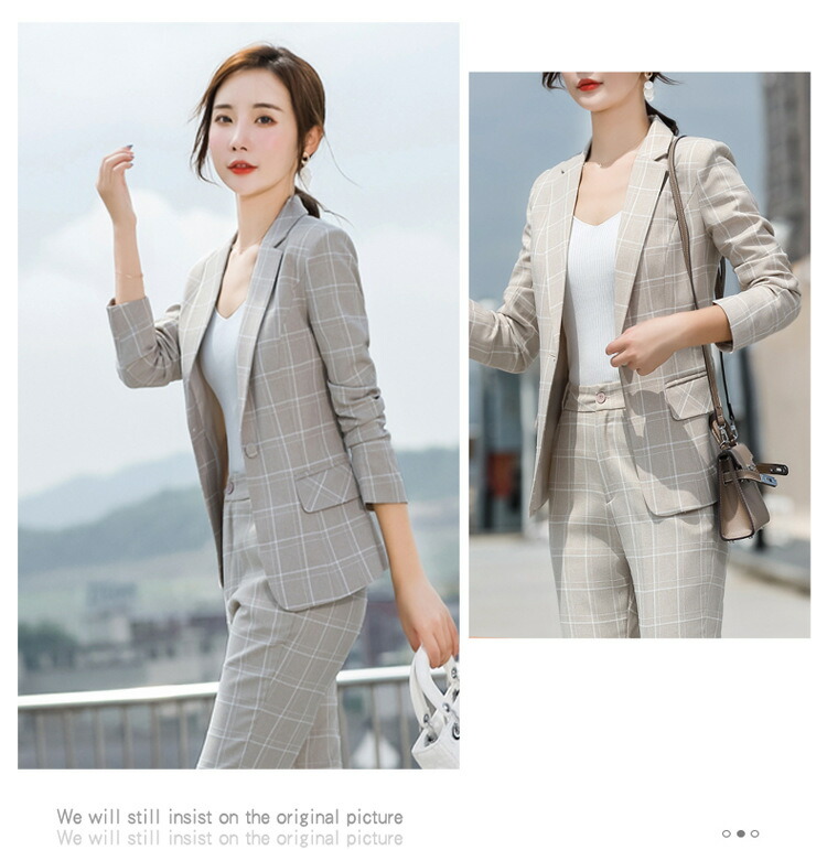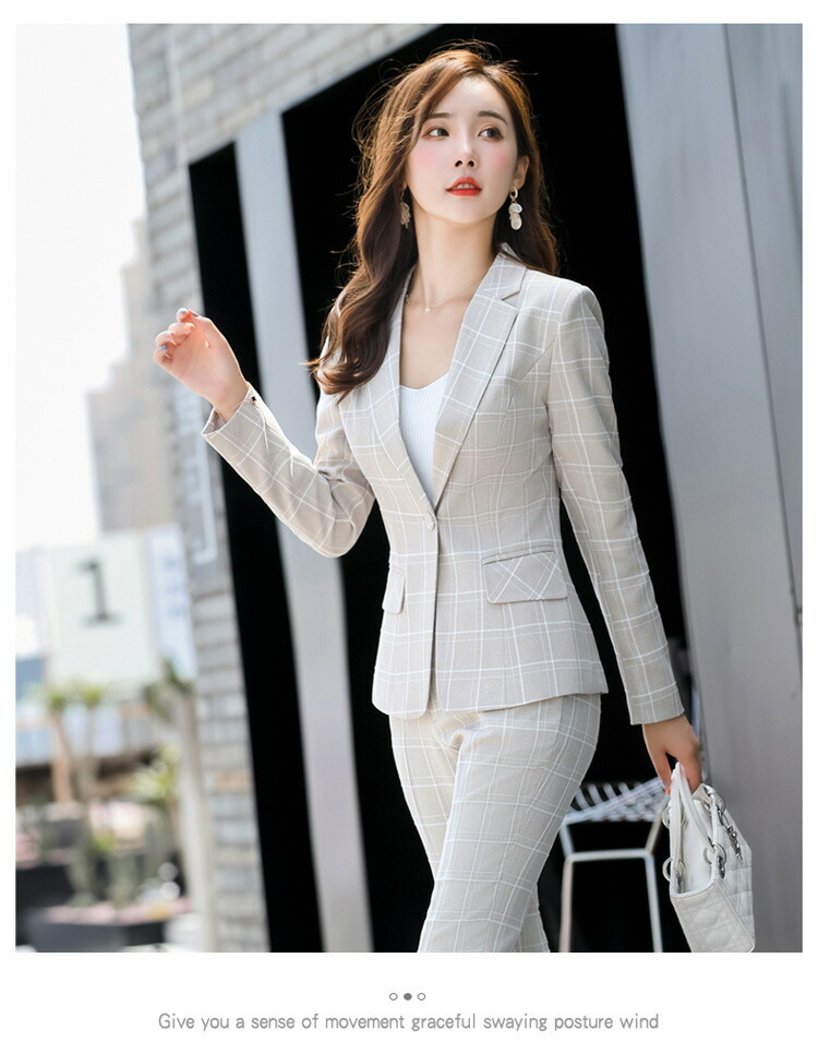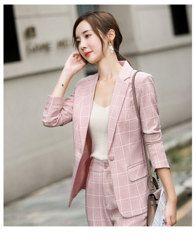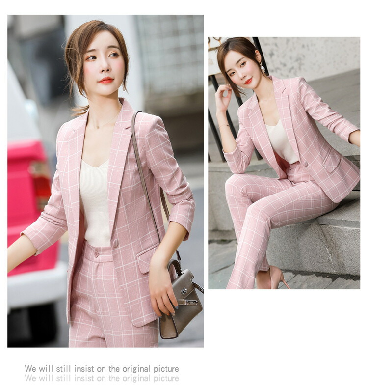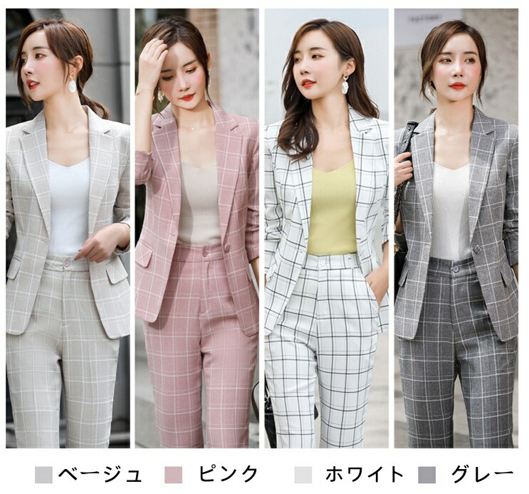 レディーススーツ チェック柄 スリム レディースファッション 通販 ピンク ホワイト ベージュ グレー S M L XL 2XL 3XL 4XL