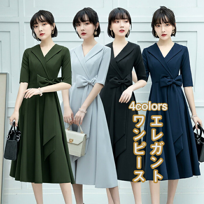 ワンピース レディース 中袖 Aライン 無地 膝下丈 細見え 着痩せ 体型カバー 夏 春秋 シンプル 女性 エレガント ロング xS-3XL ドレス