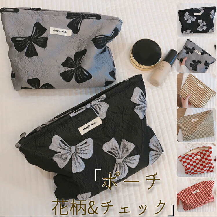 ポーチ 小物入れ おしゃれ レディース 大きめ 花柄 チェック マチあり 可愛い 化粧ポーチ コスメポーチ 収納 ファスナー 大人 エレガント 韓国 レトロ 整理整頓 仕事 学生 シンプル