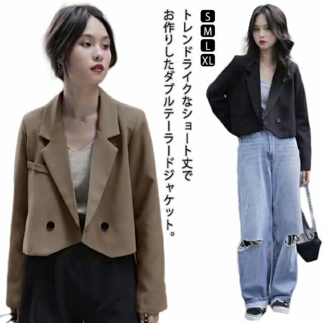 テーラードジャケット ダブル レディース 春 夏 秋 ショート ジャケット テーラード 長袖 ショート丈 ショートジャケット ショートテーラード 薄手 裏地あり トップス アウター ライトア ゆったり