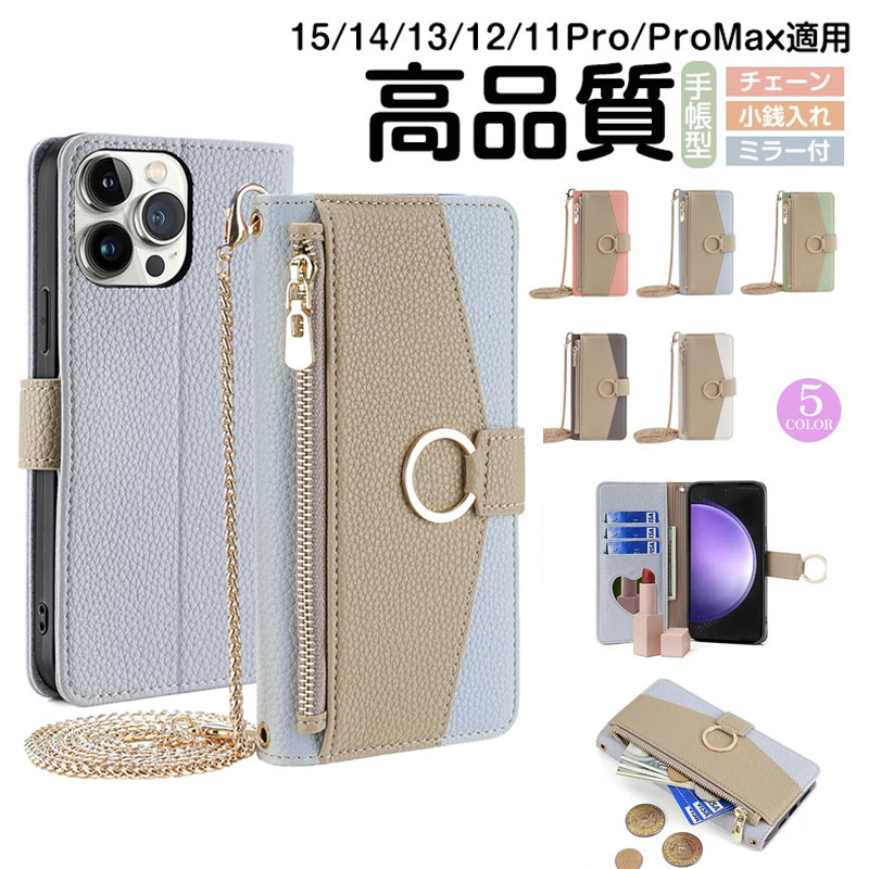 鏡 小銭入れ チェーン付き iPhone15 iPhone14 スマホケース手帳型 iPhone 15 plus 13 12 11 pro 携帯ケース iPhone11 iPhone12pro max