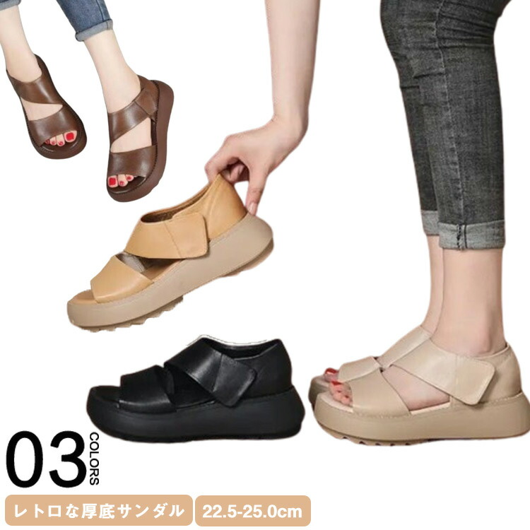 夏 レトロな厚底サンダル レディース 快適 外反拇趾 幅広 歩きやすい サンダル 厚底 ベルト 楽ちん 身長アップ 疲れにくい カジュアル ウエッジソール 滑り止め 通気性 甲高 美脚 厚 軽量