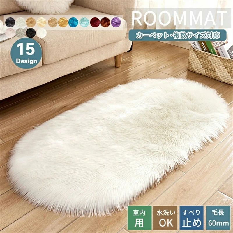 15カラー 11サイズ ラグ フェイクファー 長毛 敷物 楕円形 暖かい マット カーペット 絨毯 秋冬 リビング ベッドルーム フロアマット シャギーラグ かわいい 屋内 室内 ベッドサイド