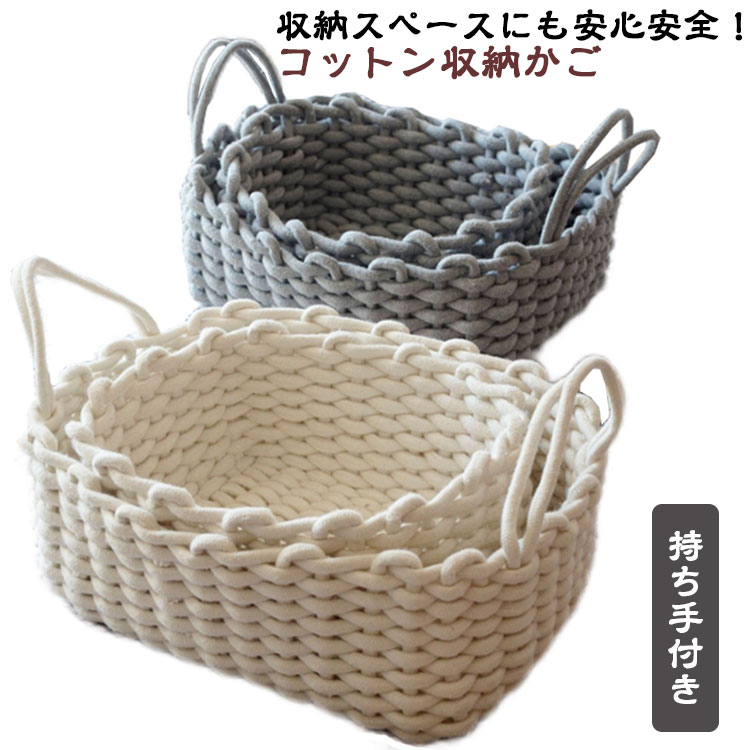 コットンロープ バスケット 柔らか 収納 持ち手付き シンプル 無地 おしゃれ インテリア コットンカゴ タオル収納 衣類収納 おもちゃ 子供部屋 大容量 レクタングル 着替え 入れ 置き ギフ 荷物